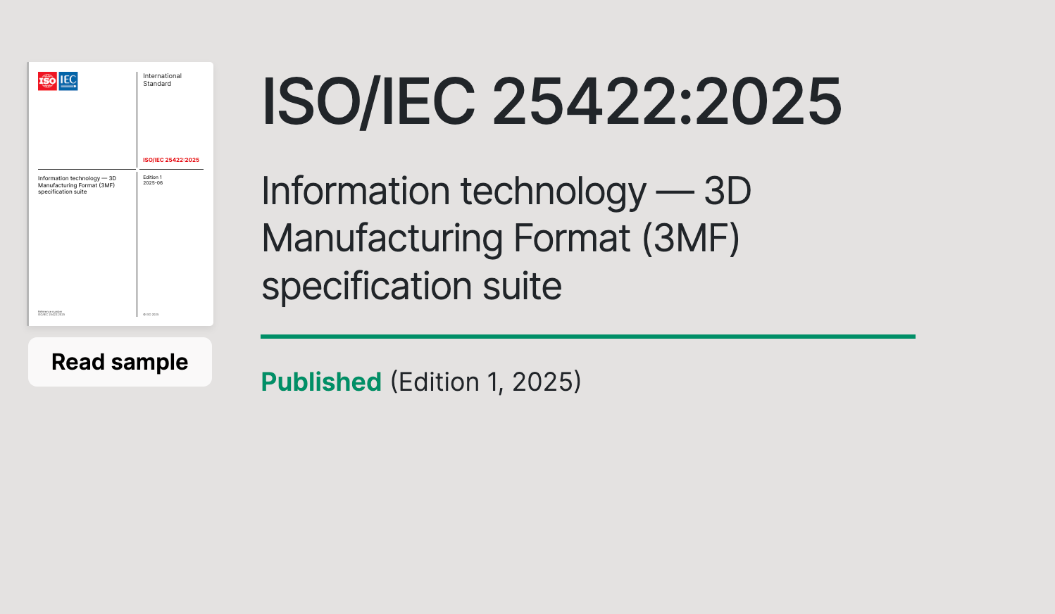 3MF: Now an ISO/IEC Standard 25422:2025 for the Future of Manufacturing