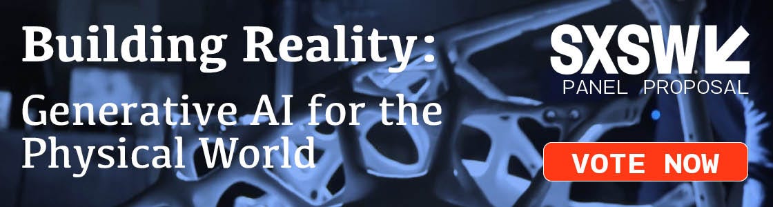 Karl D.D. Willis of Autodesk Research, Ryan McClelland of NASA, Caitlin Mueller of MIT and Duann Scott of CDFAM have submitted a proposal for a panel at SXSW 2026 exploring the intersection of generative AI, computational design, and physical manufacturing, we need your vote to help make the panel at SXSW a reality!