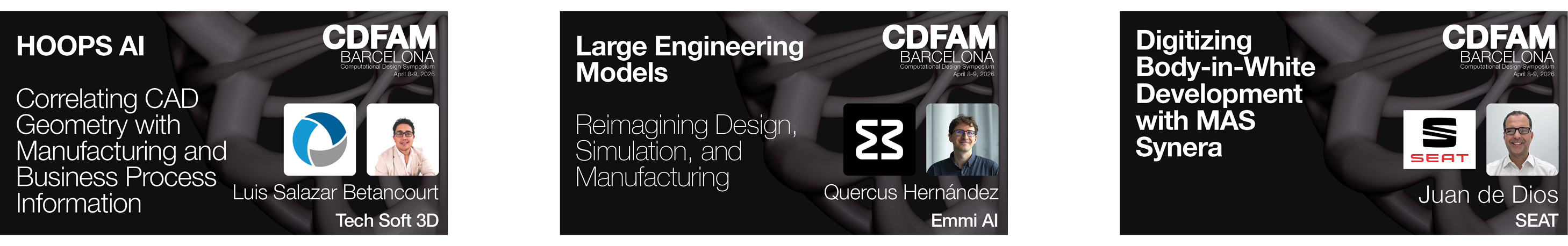 Tech Soft 3D will present HOOPS AI, a framework for correlating CAD geometry with manufacturing behavior and business process information. The approach transforms CAD and manufacturing data into unified, AI-ready representations that can bridge engineering and non-engineering domains without dependence on native CAD kernels or proprietary data models - enabling AI systems to reason across design, manufacturing outcomes, and operational drivers within a single coherent architecture. Istari will address the infrastructure problem from a different angle: secure, decentralized access to engineering data, enabling teams to work live from source data and collaborate in real time without surrendering data control. Quix will present their platform for automating R&D data analysis - consolidating test data into a single repository, enabling custom analysis tooling, automated report generation, and sequential test execution, removing the manual overhead that slows engineering teams between simulation and decision. Synera will present their work on Body-in-White development using Synera MAS, demonstrating how computational design workflows can modernize and accelerate automotive engineering processes in collaboration with SEAT-CUPRA.