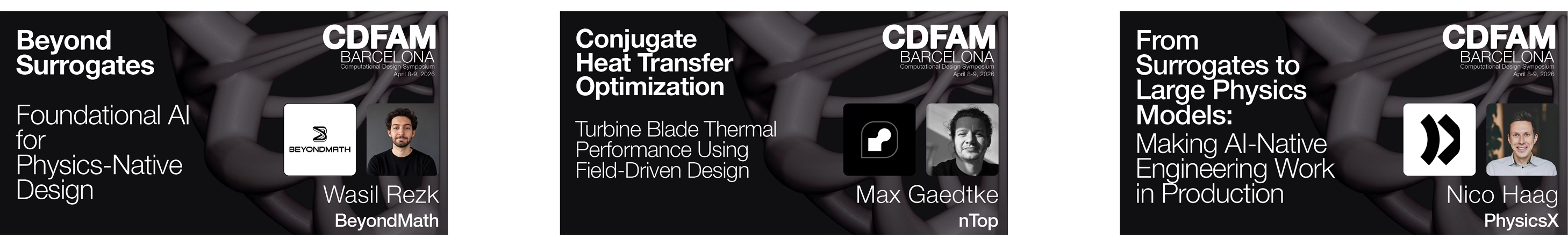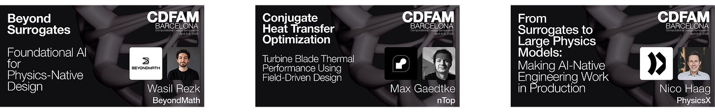 PhysicsX will present their work moving from task-specific surrogate models toward Large Physics Models for production aerodynamics workflows. BeyondMath will argue for a different approach entirely - foundational physics AI trained on self-generated, first-principles data rather than customer simulation data, with case studies from motorsport and energy. EMMI AI will present NeuralMould, their commercially deployed Large Engineering Model for injection moulding, consolidating geometry processing, physics prediction, and post-processing into a unified interface. ARENA.AI will discuss foundation model development for electromagnetism, targeting electronic hardware design across semiconductor, aerospace, and automotive sectors. Pasteur Labs will present their perspective on simulation intelligence and where the field is heading.
