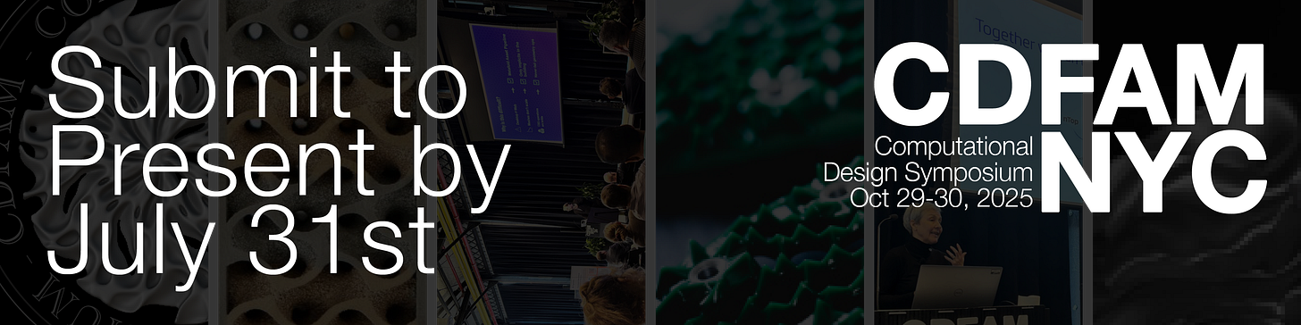 Presenting at CDFAM offers the chance to join a peer group actively shaping the next phase of design and engineering professionals developing new tools, applying advanced computation to physical problems, and building scalable systems that close the loop from bits to atoms.