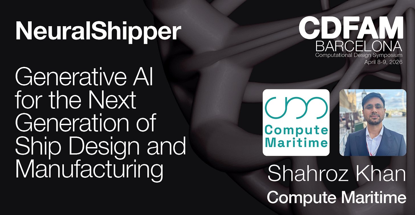 This excerpt from an interview with Shahroz Khan, CEO of Compute Maritime, previews his presentation at CDFAM Barcelona within the broader context of how AI and machine learning are reshaping engineering design. As computational methods move from automation toward AI-native generation, the conversation highlights NeuralShipper, a generative system for ship design that produces CAD-ready geometry and supports simulation-driven workflows from the earliest stages of development.